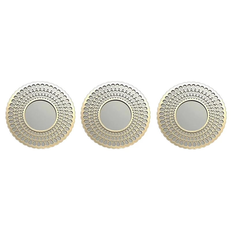 Mirrors just add a touch of glam anywhere they’re placed, and our 3-piece gold mirror set is no exception. Whether you’re looking at one last glimpse before you leave the house, or just brighten up your living spaces, adding a mirror like this one is a great option for a useful, decorative accent in your home. Reflect on this, our 3-piece gold mirror set is a gleaming touch for any living space. And since mirrors have the added bonus of reflecting light, this piece, wall mounted or leaning is sure to make a living room or bedroom feel even larger.