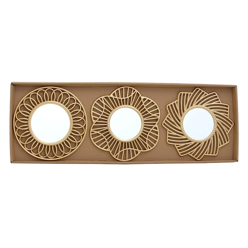 Mirrors just add a touch of glam anywhere they’re placed, and our 3-piece wall mirror set is no exception. Whether you’re looking at one last glimpse before you leave the house, or just brighten up your living spaces, adding a mirror like this one is a great option for a useful, decorative accent in your home. Reflect on this, our 3-piece wall mirror set is a gleaming touch for any living space. And since mirrors have the added bonus of reflecting light, this piece, wall mounted or leaning is sure to make a living room or bedroom feel even larger.