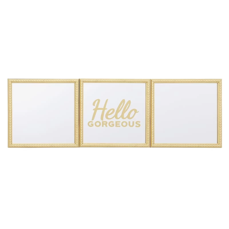 3-Piece Hello Gorgeous Gold Framed Wall Mirror Set, 10"
