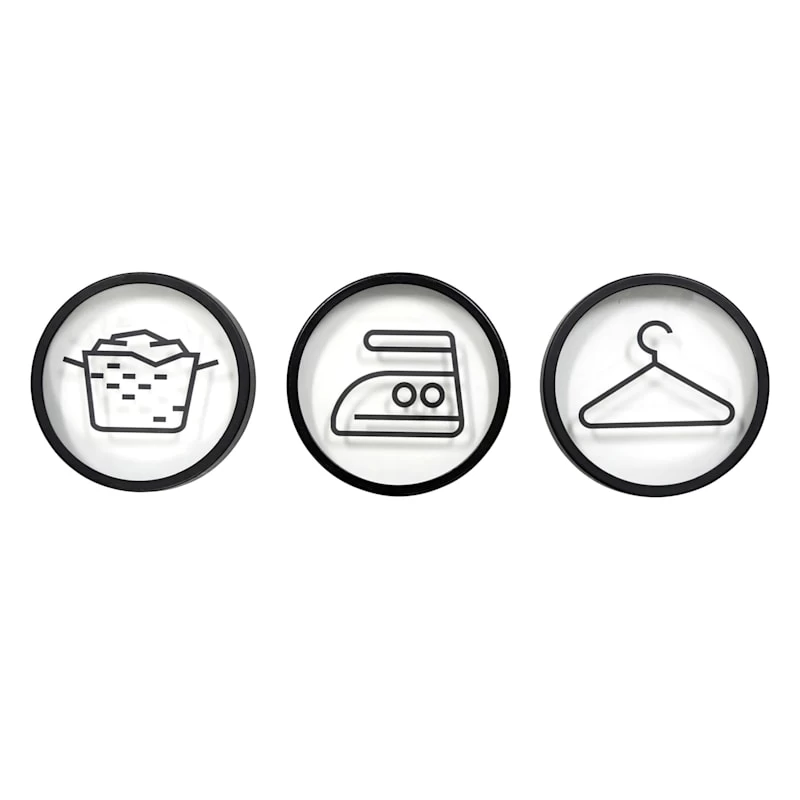 3-Piece Laundry Icons Glass Wall Art, 8"
