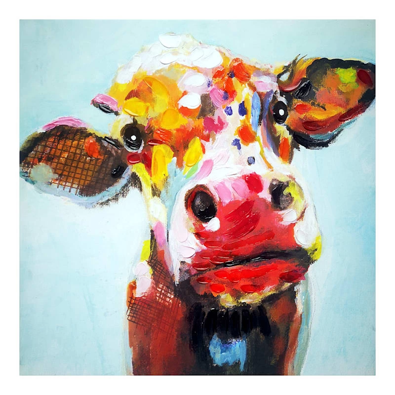 Colorful Cow Embellished Canvas Wall Art, 24"