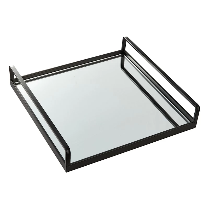 Crosby St Black Metal Mirrored Decorative Tray, 13"