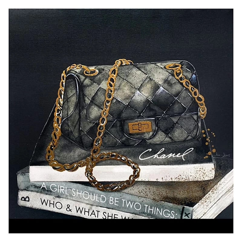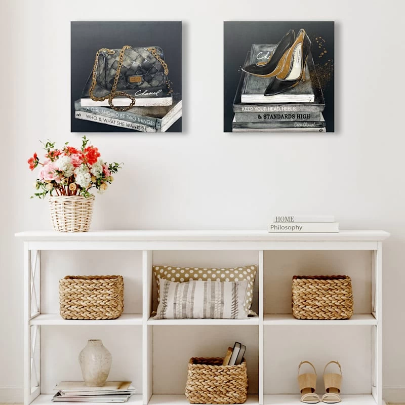 Fashion Bag & Books Foiled Canvas Wall Art, 16"