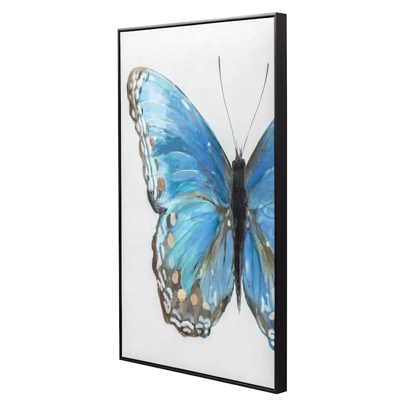 Framed Blue Butterfly Textured Canvas Wall Art, 24×36