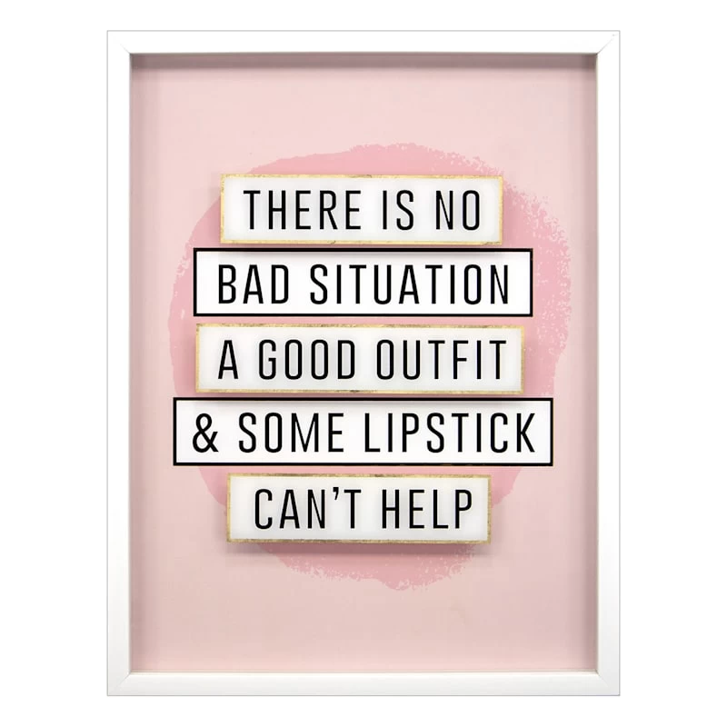 Glass Framed There Is No Bad Situation A Good Outfit & Some Lipstick Can’t Help Wall Art, 12×16