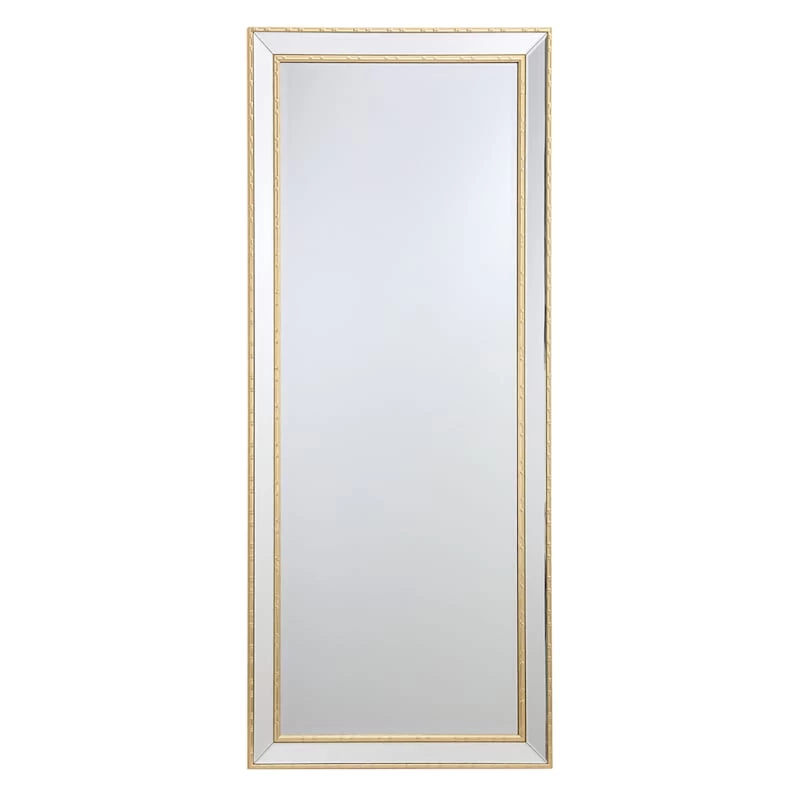Gold Bamboo Wood Trimmed Beveled Wall Mirror, 24×58