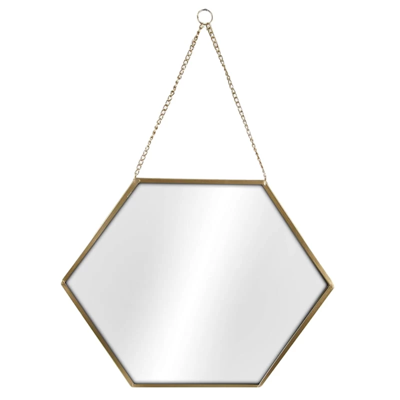 Gold Metal Hexagon Shaped Hanging Wall Mirror, 16"