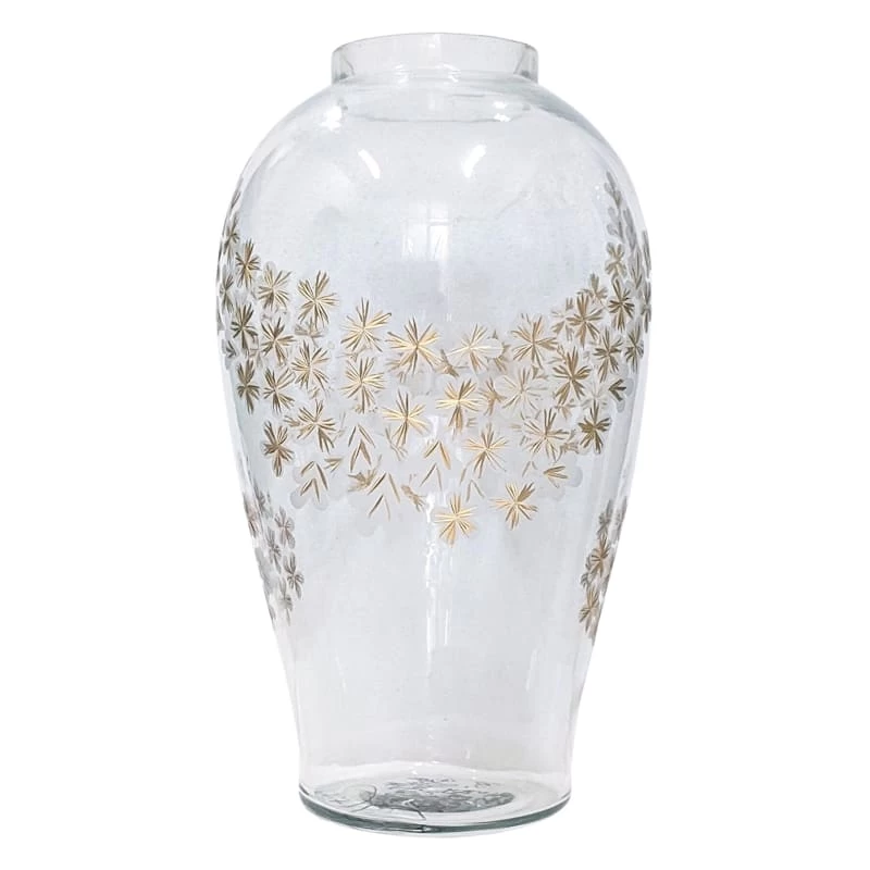 Grace Mitchell Gold Floral Etched Glass Vase, 15"