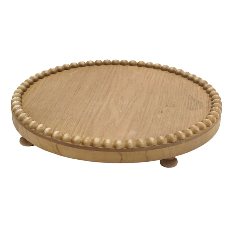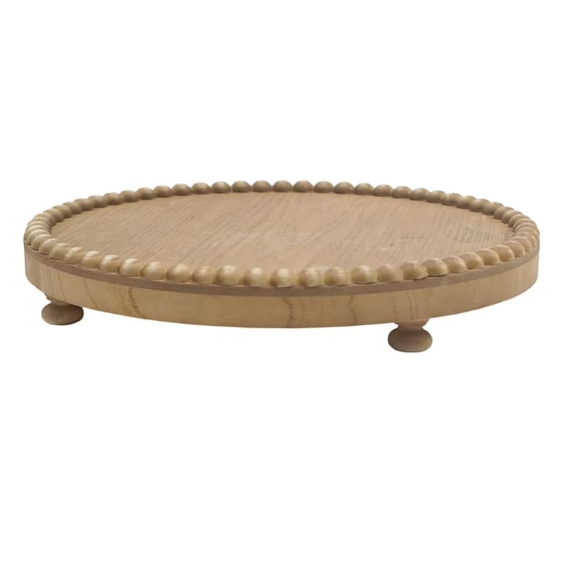 Honeybloom Decorative Footed Round Wood Tray, 12"