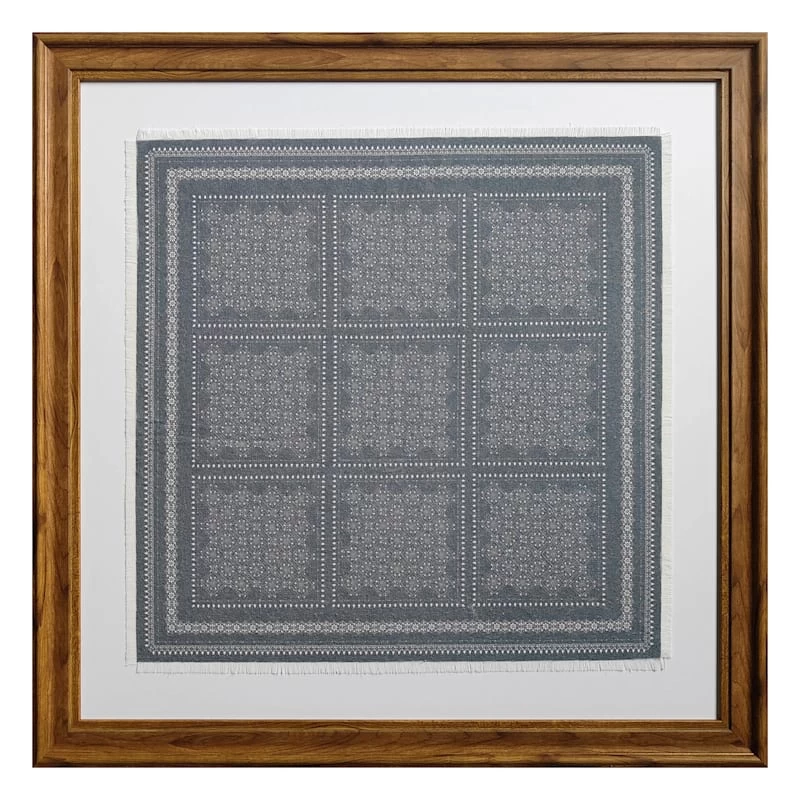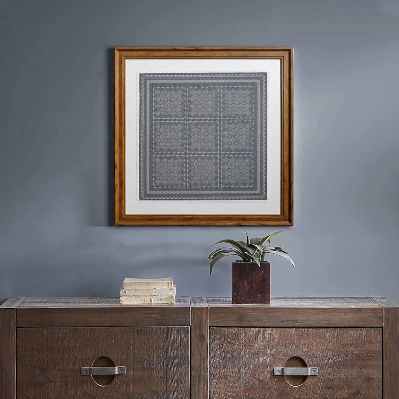 Honeybloom Glass Framed Blue & White Abstract Tile Print Wall Art, 27"