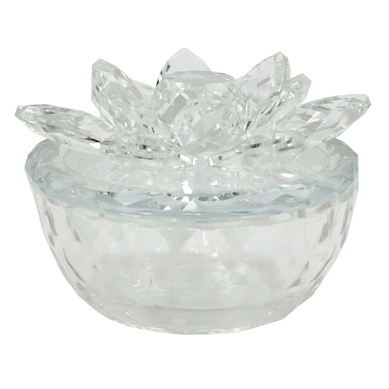Laila Ali brings the mindset of a world-champion athlete and passion for healthy living to create a modern lifestyle collection with serious style found only At Home. This contemporary table decor is an easy way to add a pop of charm to any room. Bring new life to your dining room, bedroom or den with this interesting 4x3in. clear crystal lotus box. This piece will bring years of enjoyment and add to your modern aesthetic.