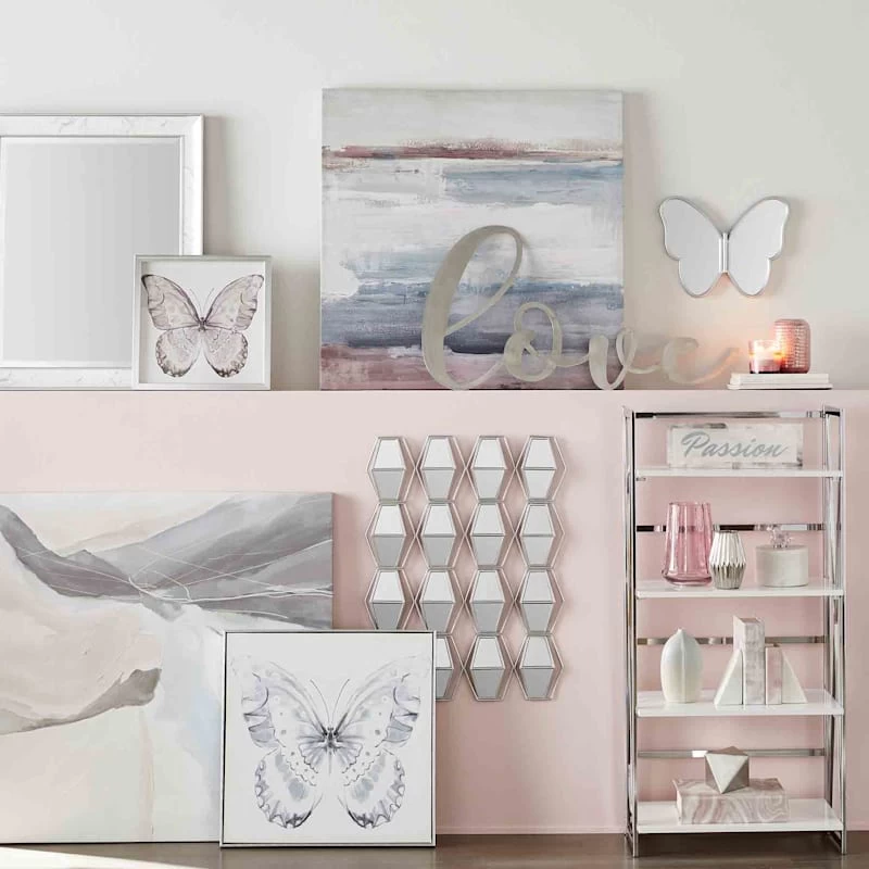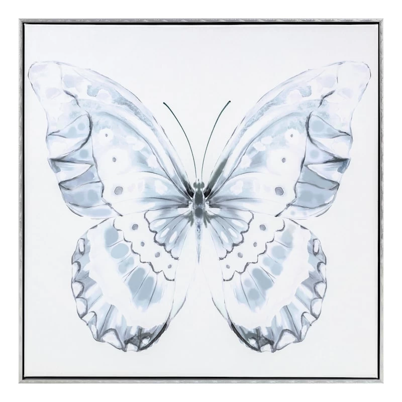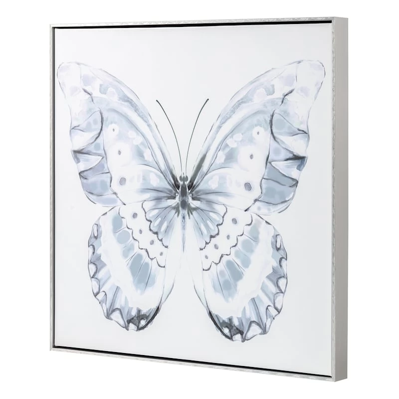 Laila Ali brings the mindset of a world-champion athlete and passion for healthy living to create a modern lifestyle collection with serious style found only At Home. This butterfly print is an easy way to add a pop of charm to any room. Bring new life to your bedroom, kitchen or den with this interesting 24in. square framed hanging wall art. Featuring a blue and white butterfly design, this contemporary wood and canvas picture will bring years of enjoyment and add to your modern aesthetic.