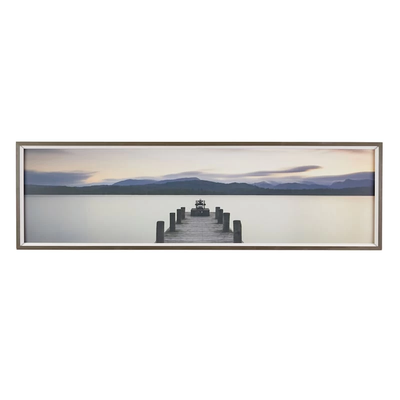 They say beauty is in the eye of the beholder. Art is too. Add a little character to any room in your home with our 68x20in. Lake District framed canvas wall art. The possibilities are endless with this grey, black, blue, ivory and white wall decor. A neutral lake and pier landscape motif creates visual interest against a visually interesting backdrop. Hang this wall decor to make a bold statement and to add a touch of personality to your home decor.