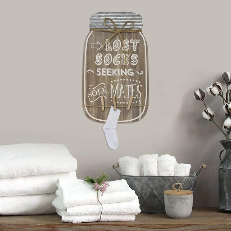 Lost Sock Clothes Pin Wall Decor, 9×14