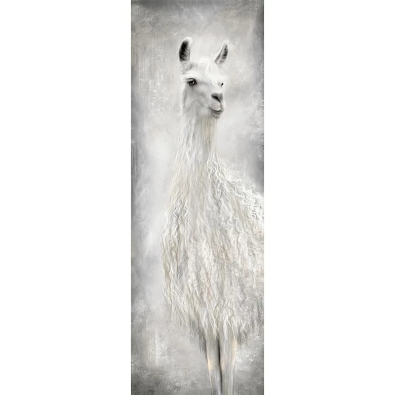 They say beauty is in the eye of the beholder. Art is too. Add a little character to any room in your home with our 12x36in. Lulu the Llama canvas wall art. The possibilities are endless with this white, black, grey, ivory and white multi wall decor. A multicolor stately llama portrait creates visual interest against a visually interesting backdrop. Hang this wall decor to make a bold statement and to add a touch of personality to your home decor.