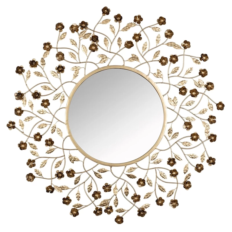 Mirrors just add a touch of glam anywhere they’re placed, and our 26in metal floral framed wall mirror is no exception. Whether you’re looking at one last glimpse before you leave the house, or just brighten up your living spaces, adding a mirror like this one is a great option for a useful, decorative accent in your home. Reflect on this, our metal floral framed wall mirror is a gleaming touch for any living space. And since mirrors have the added bonus of reflecting light, this piece, wall mounted or leaning is sure to make a living room or bedroom feel even larger.