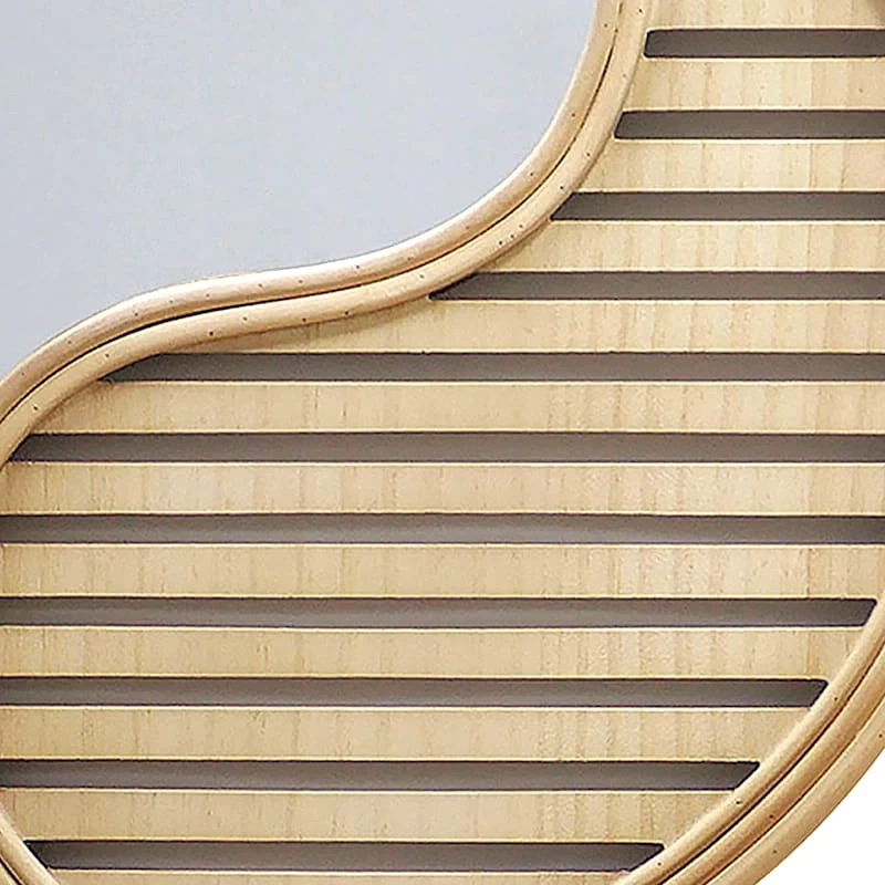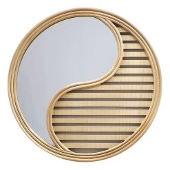 Natural Faux Wood Round Yin Yang Wall Mirror, 20"
