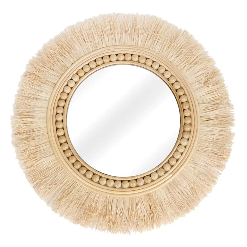 Mirrors just add a touch of glam anywhere they’re placed, and our 29in natural raffia framed round wall mirror is no exception. Whether you’re looking at one last glimpse before you leave the house, or just brighten up your living spaces, adding a mirror like this one is a great option for a useful, decorative accent in your home. Reflect on this, our natural raffia framed round wall mirror is a gleaming touch for any living space. And since mirrors have the added bonus of reflecting light, this piece, wall mounted or leaning is sure to make a living room or bedroom feel even larger.