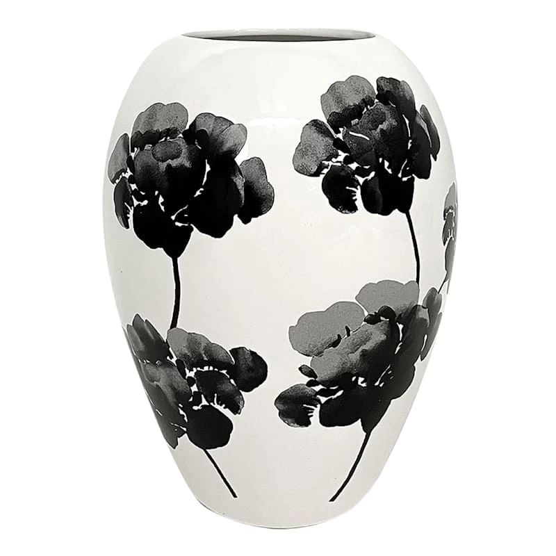 Providence Black & White Floral Ceramic Vase, 8.7"