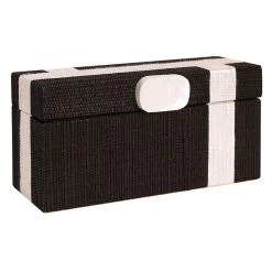 A collection that lets everyone relax in style. Polished finishes and classic hues pair with fun finds. Providence is where elegant settings still feel comfortable and warm—exclusively At Home. This 9in. black and white woven box is a versatile storage solution. The modular, durable, stackable decorative box optimizes storage and space. The box features a decorative two-tone motif with lid to protect items from dust.