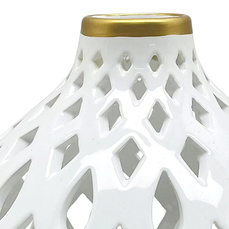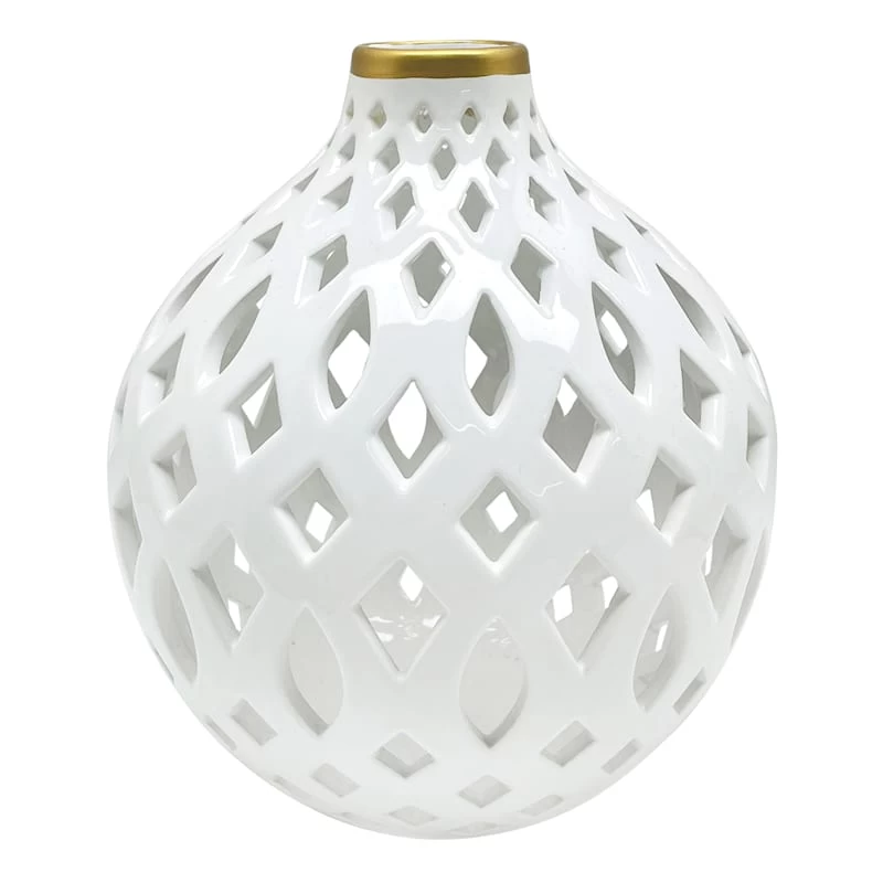 Providence White Cutout Ceramic Vase, 9"