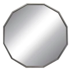 Mirrors just add a touch of glam anywhere they’re placed, and our 27in silver dodecagon mirror is no exception. Whether you’re looking at one last glimpse before you leave the house, or just brighten up your living spaces, adding a mirror like this one is a great option for a useful, decorative accent in your home. Reflect on this, our silver dodecagon mirror is a gleaming touch for any living space. And since mirrors have the added bonus of reflecting light, this piece, wall mounted or leaning is sure to make a living room or bedroom feel even larger.