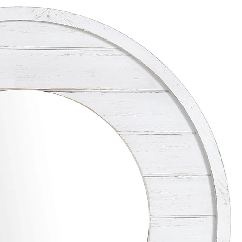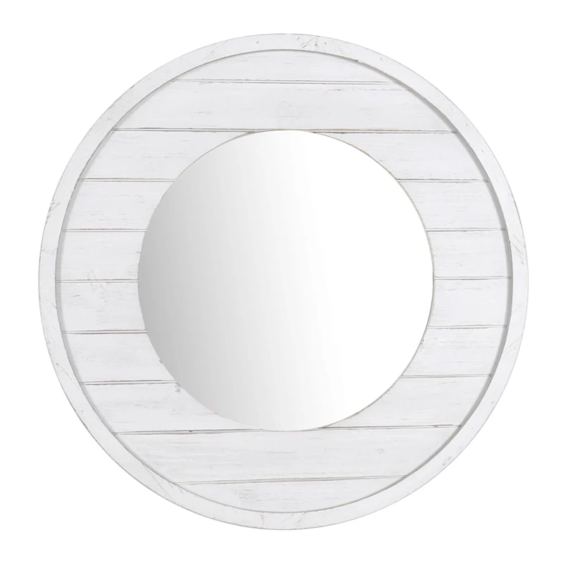 Ty Pennington White Faux Wood Round Wall Mirror, 30"