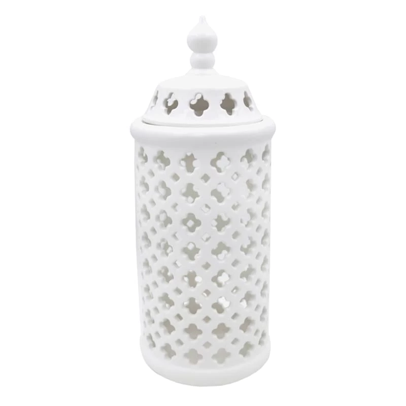 White Ceramic Cutout Cylinder, 15"