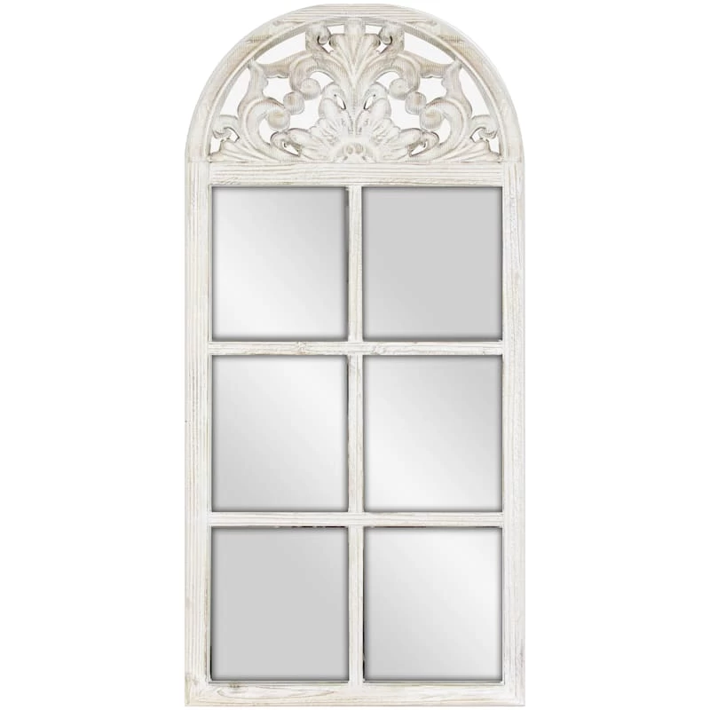 Windowpane With Ornate Carved Top Wall Mirror, 20×42